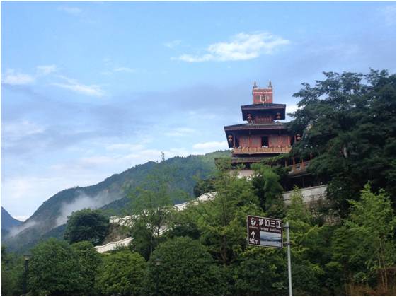 欣賞了都江堰的美景,順岷江而上,經(jīng)映秀小鎮(zhèn),往下一站進(jìn)發(fā)。起初玩耍的疲憊,讓我們隨著行車的搖晃,息聲進(jìn)入夢鄉(xiāng)。藍(lán)天,白云,青山,碧水…睜開眼,難道還在做夢,雖然下著蒙蒙細(xì)雨,卻沖刷不了山水的粉黛,掩飾不了這座小鎮(zhèn)的清秀。