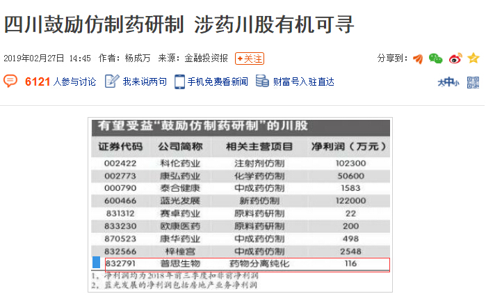 四川省政府近日出臺的《關(guān)于支持重大新藥創(chuàng)制國家科技重大專項成果轉(zhuǎn)移轉(zhuǎn)化工作的通知》(以下簡稱《通知》)提出,鼓勵仿制臨床必需、療效確切、供應(yīng)短缺的藥品,優(yōu)先仿制重大傳染病防治和罕見病治療所需藥品、處置突發(fā)公共衛(wèi)生事件所需藥品、兒童使用藥品以及專利到期前一年尚沒有提出注冊申請的藥品。鼓勵將仿制藥品目錄內(nèi)臨床急需的化學(xué)藥品和生物藥品關(guān)鍵共性技術(shù)研究及產(chǎn)品研發(fā)列入相關(guān)科技規(guī)劃和研發(fā)計劃,支持產(chǎn)學(xué)研單位申報國家相關(guān)科技計劃。對仿制藥企業(yè)符合西部大開發(fā)或高新技術(shù)企業(yè)優(yōu)惠政策的,減按15%的稅率征收企業(yè)所得稅。做好與藥品采購、醫(yī)保支付等改革政策的銜接,促進(jìn)仿制藥企業(yè)不斷增強科技創(chuàng)新能力,推動轉(zhuǎn)型升級。《金融投資報》記者梳理后發(fā)現(xiàn),目前川內(nèi)涉藥企業(yè)中包括了部分A股上市公司和新三板掛牌公司,隨著上述政策落地實施,涉藥川股有機可尋。