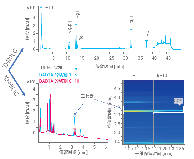 對(duì)于復(fù)雜樣品或化藥雜質(zhì)分析,常需要復(fù)雜的液相方法開發(fā)和含非揮發(fā)性鹽流動(dòng)相,二維色譜相較于傳統(tǒng)一維色譜而言,無需繁瑣的前處理方法、復(fù)雜的色譜條件,還可以使用含鹽流動(dòng)相。二維色譜是傳統(tǒng)液相色譜的補(bǔ)充,不僅能提高復(fù)雜組分的分離能力,而且能夠?qū)崿F(xiàn)在線脫鹽。