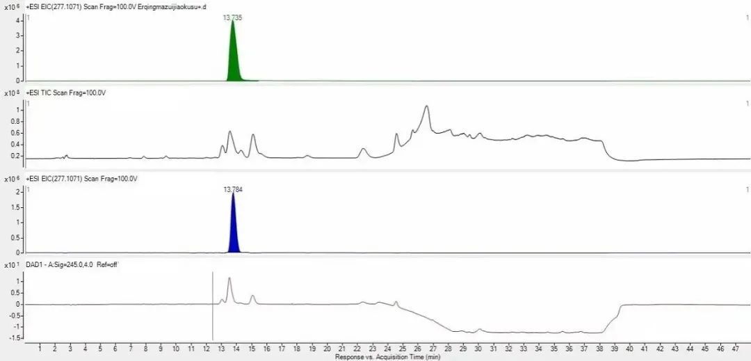 適用于無紫外吸收、色譜分離難度大或微量成分的定量。質(zhì)譜定量具有較高的靈敏度,是傳統(tǒng)紫外檢測(cè)器的1000倍。