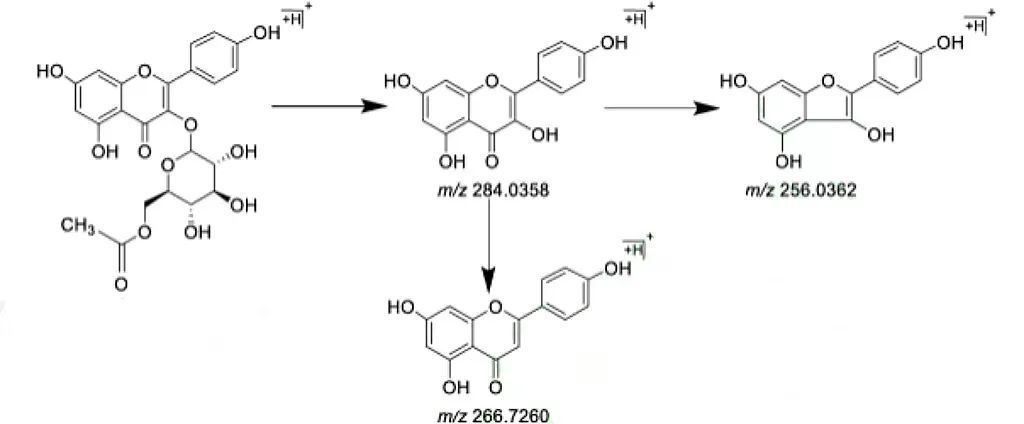以天然產(chǎn)物二級(jí)質(zhì)譜庫為依托,鑒定分析藥物原型成分,再通過高分辨質(zhì)譜提取各化學(xué)成分的精確質(zhì)荷比等信息對(duì)代謝產(chǎn)物進(jìn)行辨識(shí)研究,從而分析藥物代謝途徑,明確藥物代謝過程,為藥物物質(zhì)基礎(chǔ)研究打下基礎(chǔ)。