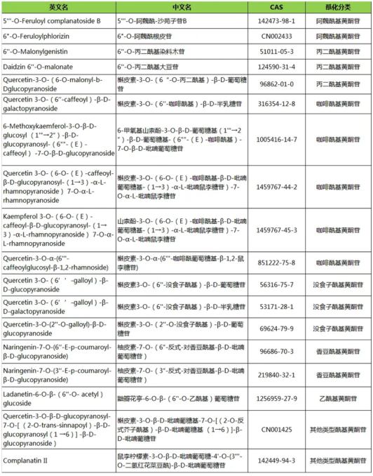 普思生物提供以下酰化黃酮糖苷對照品現(xiàn)貨: