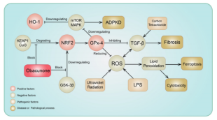 通過(guò)抑制TGF-β/SMAD通路,激活Nrf2/GPx4通路抑制鐵死亡,改善單側(cè)輸尿管梗阻模型小鼠的腎間質(zhì)纖維化[1]。
