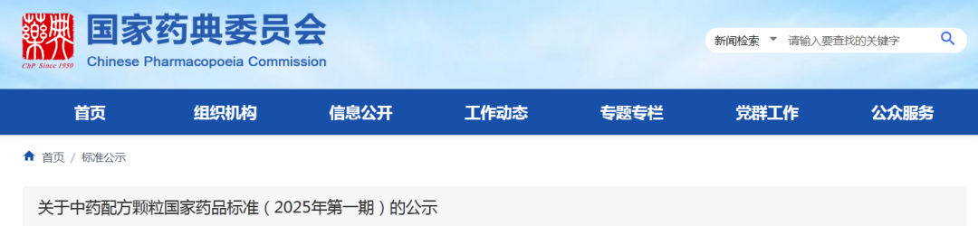 關(guān)于中藥配方顆粒國(guó)家藥品標(biāo)準(zhǔn)(2025年第一期)的公示(附普思相關(guān)對(duì)照品清單)